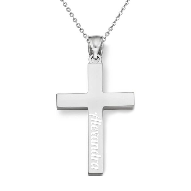 Bestel hierboven direct deze hanger kruis graveren zilverkleurig en creëer jouw unieke ketting.