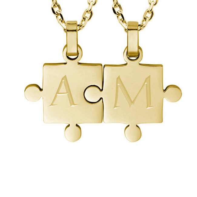 Je kan de puzzelstukjes ketting laten graveren met de begin letter van jezelf en van de persoon waar je de andere ketting aan geeft zo maak je de puzzelstukjes ketting persoonlijk en uniek.