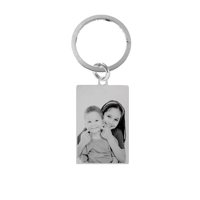 Bestel hierboven direct de sleutelhanger graveren rechthoek zilverkleurig en maak je sleutelbos of tas persoonlijk door het toevoegen van jouw foto of tekst op de metalen sleutelhanger rechthoek zilverkleurig.