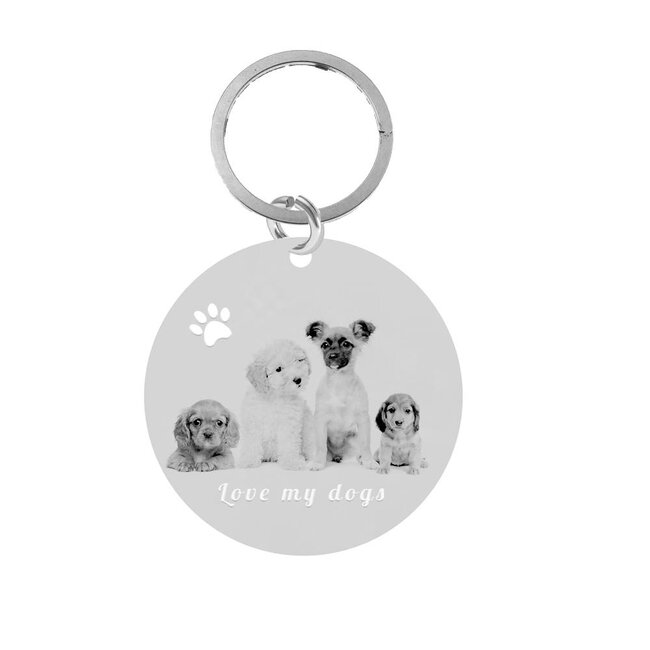 Laat jouw gekozen tekst of foto op deze sleutelhanger graveren rond groot zilverkleurig schrijf je tekst of upload je foto op de metalen sleutelhanger via ons personalisatie systeem, je ziet dan direct hoe de tekst en of foto op de sleutelhanger wordt gegraveerd.
